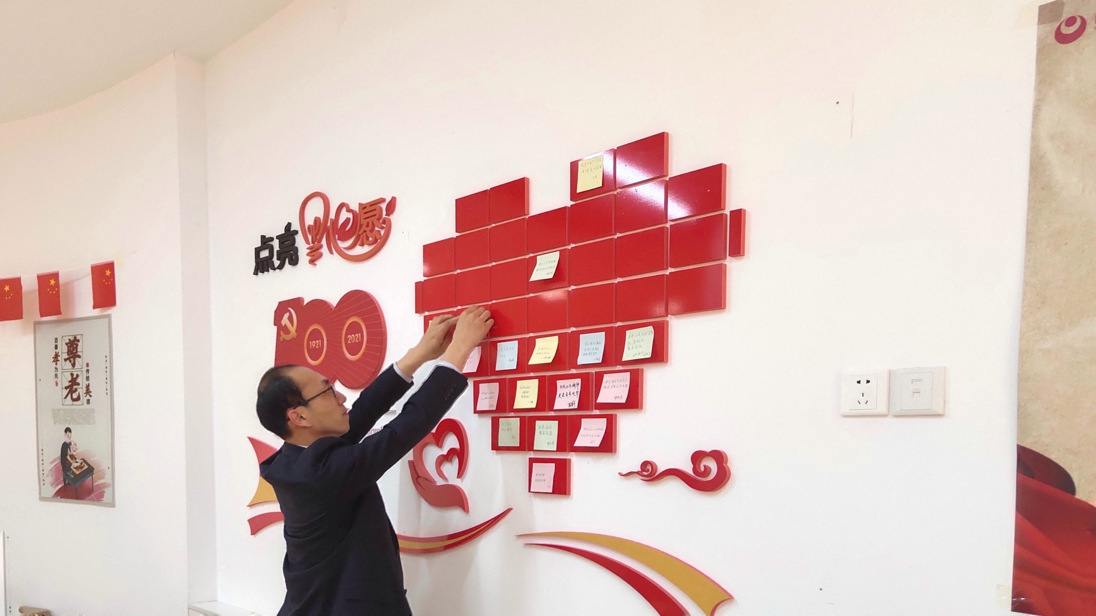 隨后,大家來到建黨百年心愿墻前,在心愿卡上一字一句地寫下對(duì)黨的祝福期盼和美好愿景,并親手貼上,表達(dá)對(duì)黨、對(duì)祖國(guó)的熱愛之情。