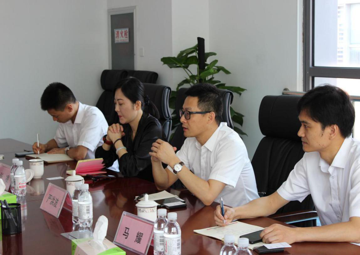 陪同人員首先向嚴(yán)總一行介紹了一樓交易大廳的具體情況和后期業(yè)務(wù)開展計劃。隨后雙方前往會議室進行座談交流。