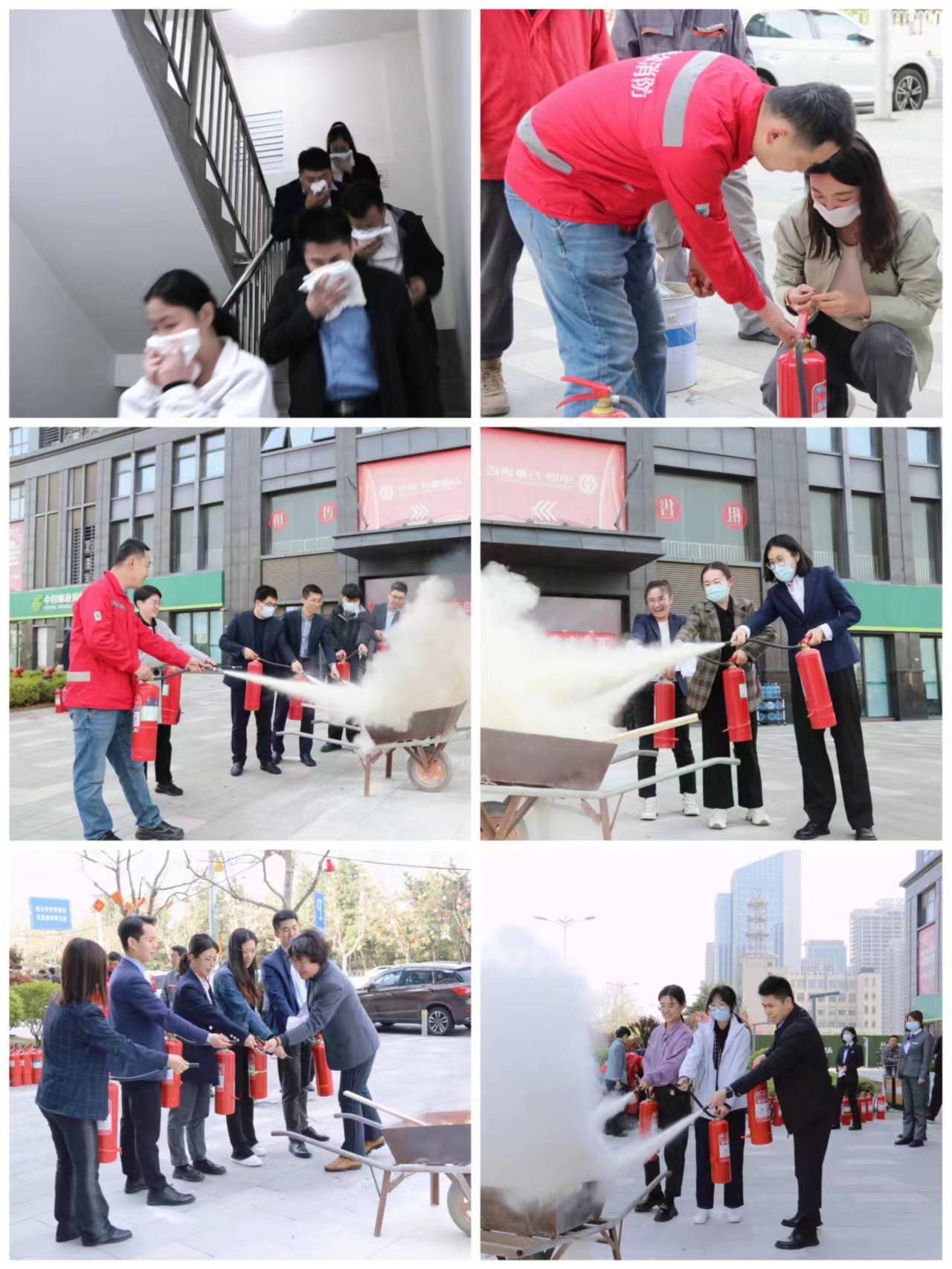 隨后,集團(tuán)聯(lián)合辦公樓物業(yè)公司,共同開展消防應(yīng)急演練,模擬17樓辦公區(qū)出現(xiàn)火情,全集團(tuán)在現(xiàn)場(chǎng)指揮組織下有序疏散。演練結(jié)束后,全體人員在指定地點(diǎn)參加了消防器材操作培訓(xùn),練習(xí)滅火器的規(guī)范使用方法。