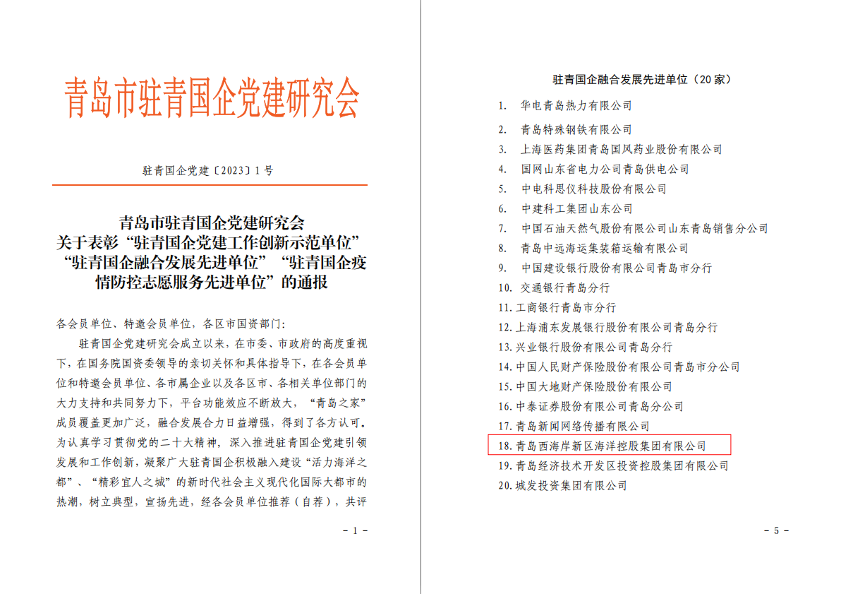 要聞信息 | ??丶瘓F(tuán)榮獲“駐青國(guó)企融合發(fā)展先進(jìn)單位”稱號(hào)